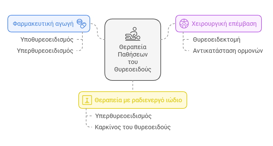 Η θεραπεία των παθήσεων του θυρεοειδούς ποικίλλει ανάλογα με τη συγκεκριμένη διάγνωση: